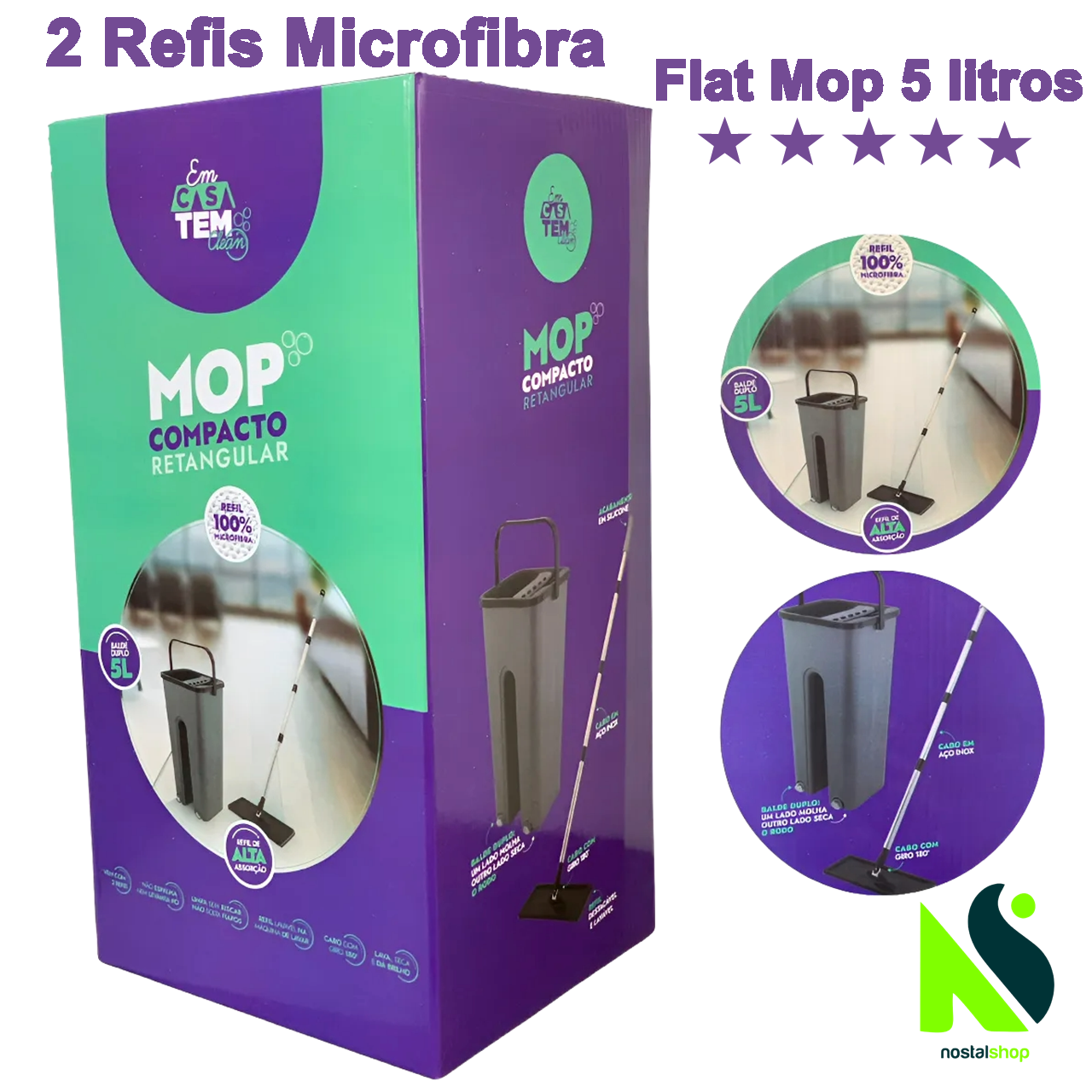 Vai substituir a vassoura, o rodo e o pano de chão na hora da limpeza. Com seu grande poder de absorção, graças a seu refil de microfibra que absorve a água e a sujeira muito mais rápido e com muito mais facilidade, possui MOP giratório 360° super eficiênte e prático.